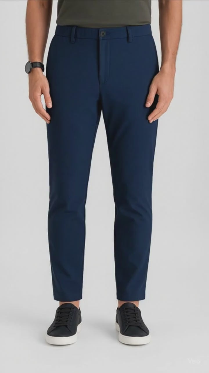 É só colocar e pronto. Nossa calça social Kyson é feita com a tecnologia têxtil do SPANDEX™, garantindo conforto, respirabilidade e um toque suave na pele, permitindo que você vista o dia todo sem acumular nenhum odor ou suor.
